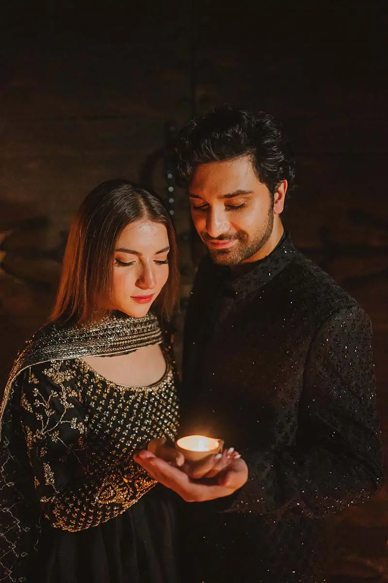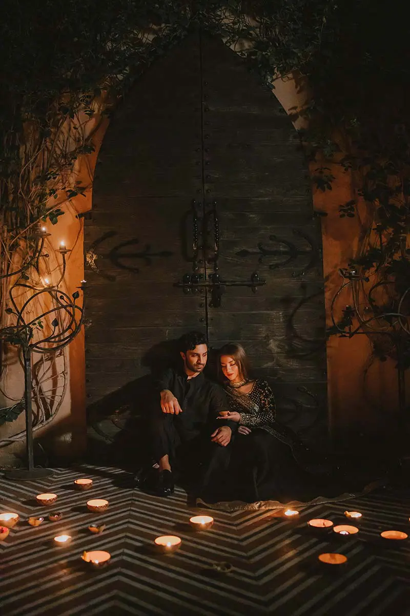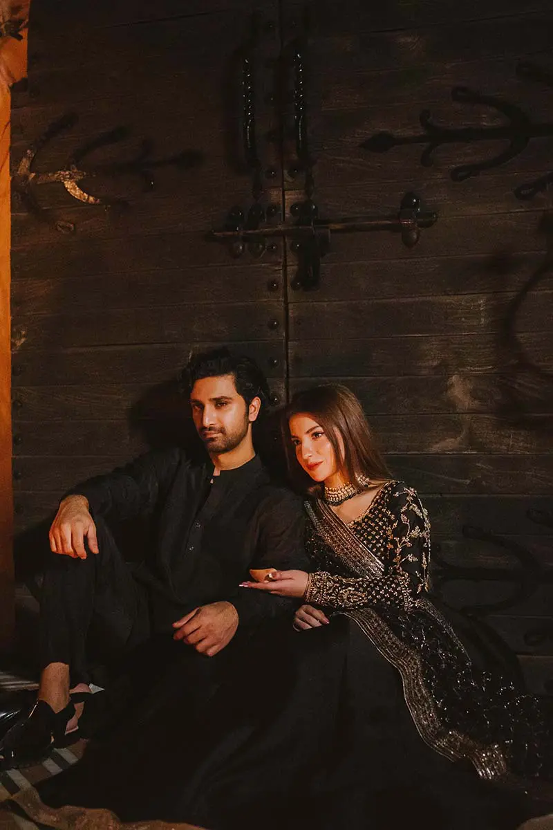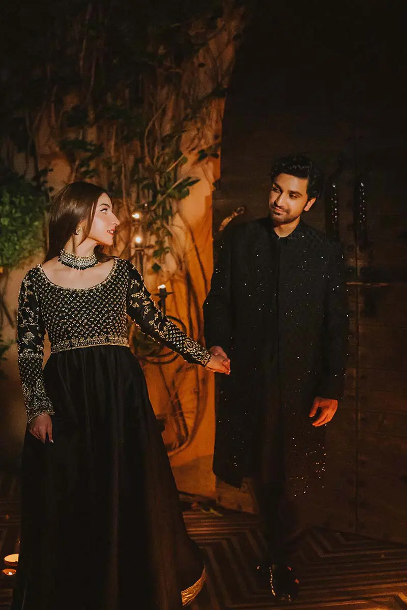 An Elegant Black Embellished Sherwani with Embroidery paired with a Black Kurta and Trouser